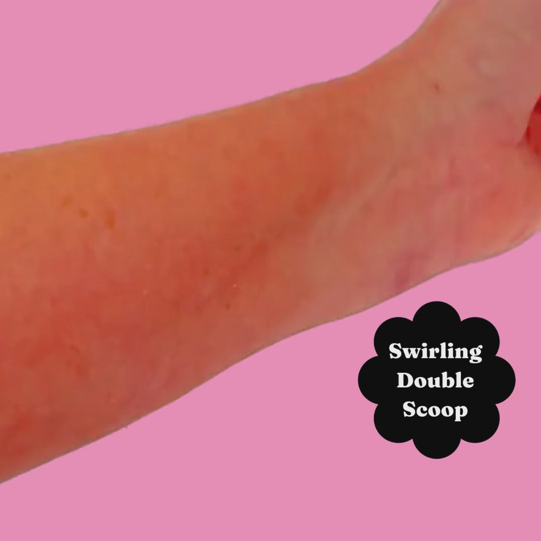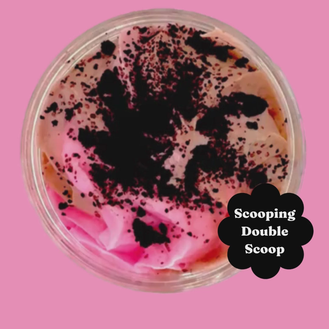 Scoop up the sweetest shower treat with Double Scoop Swirlâa frothy, whipped fusion of milk chocolate and juicy strawberry that cleanses, hydrates, and pampers in one irresistible swirl. Packed with Vitamin E and Hyaluronic Acid, this creamy lather melts onto skin, leaving it soft, smooth, and deeply nourished.